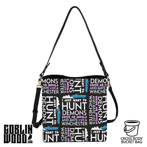Hunt Drive Ride - Black Cross Body Bucket Bag - Supernatural Inspired - Goblin Wood Exclusive