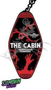 This key fob is inspired by the cabin from the movie, it features vines a creepy hand and you get a free Necronomicon with every stay (not included with this key fob! ;P)