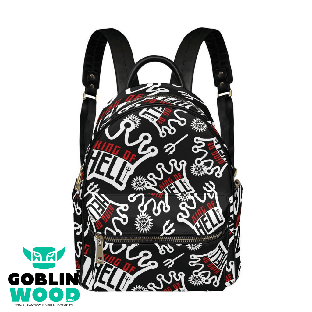 Crowley King Of Hell - (Black) AOP Mini Backpack - Supernatural Inspired - Goblin Wood Exclusive