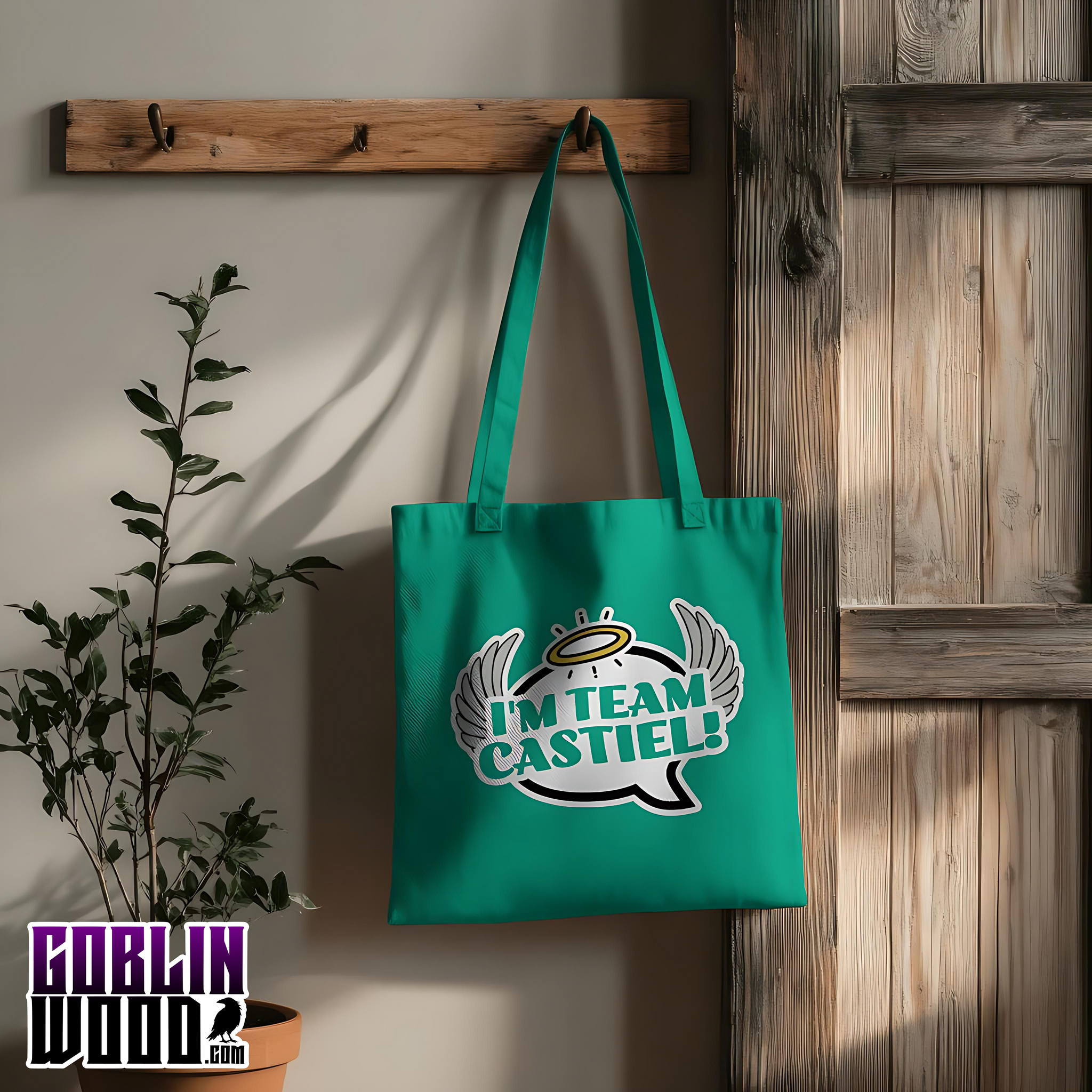 I'm Team Castiel! - Teal Speech Bubble Tote Bag - Supernatural Inspired - Goblin Wood Exclusive