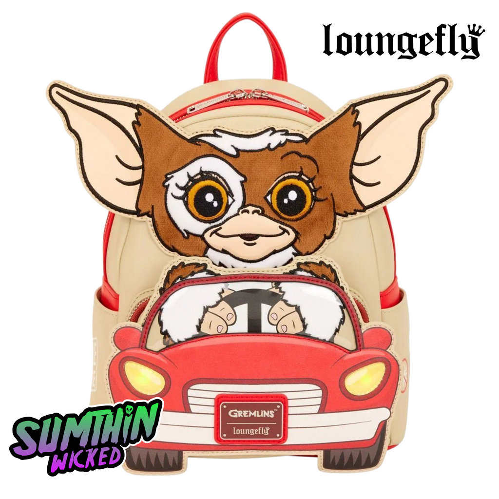 This mini backpack features Gizmo front and center with plush and embroidered details. Gizmo drives a car that doubles as the front pocket,