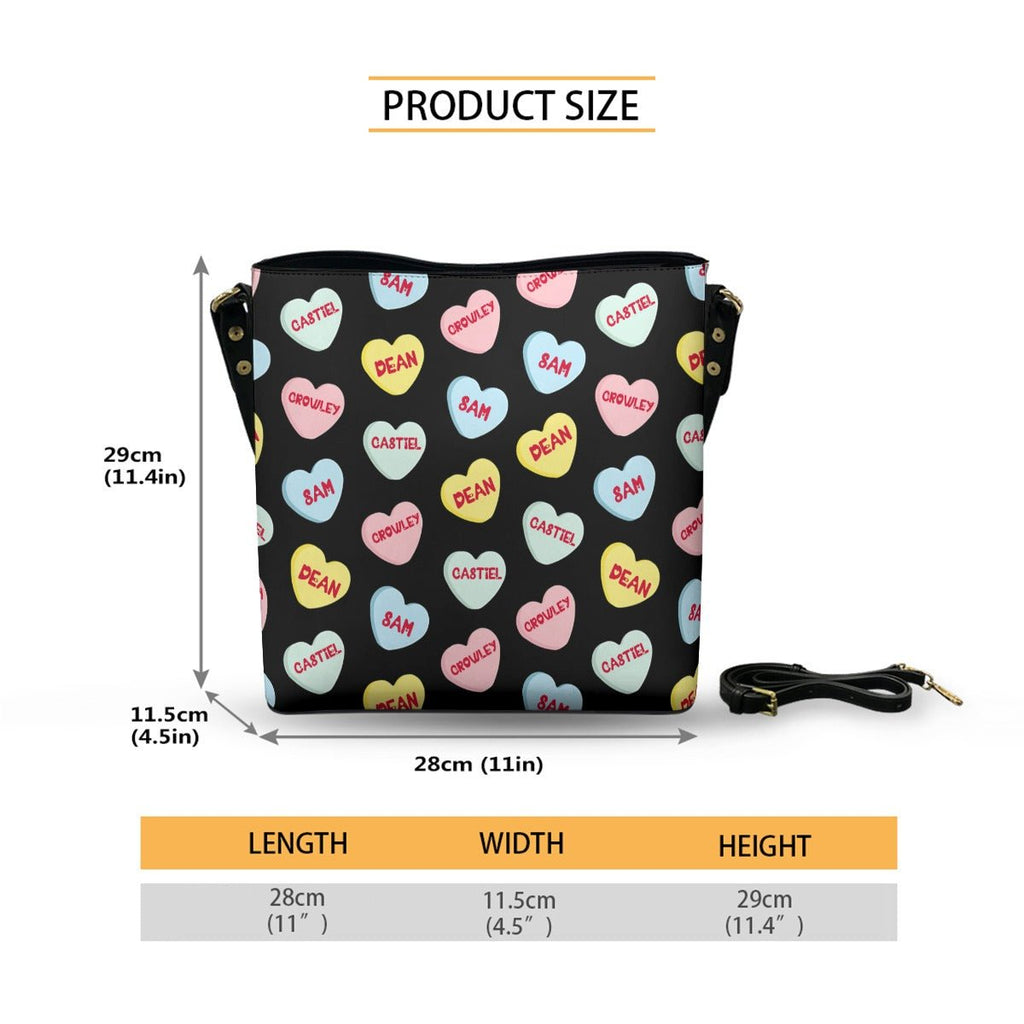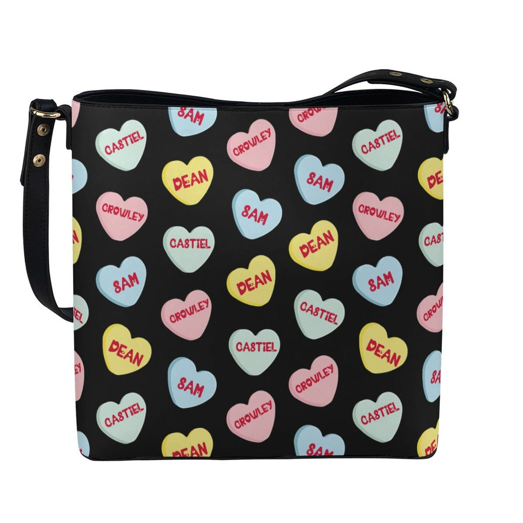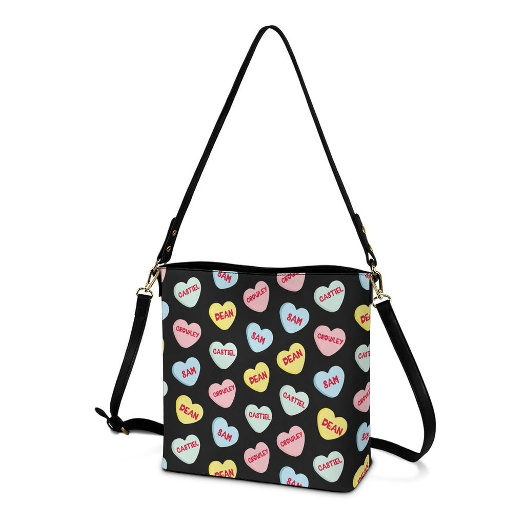 Love Hearts - Black AOP Cross Body Bucket Bag - Supernatural Inspired - Goblin Wood Exclusive