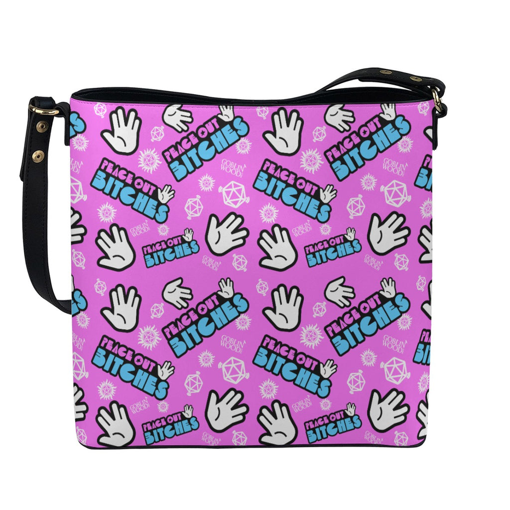 Peace Out Bitches - Bubblegum Cross Body Bucket Bag - Supernatural Inspired - Goblin Wood Exclusive