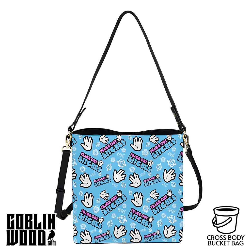 Peace Out Bitches - Sky Cross Body Bucket Bag - Supernatural Inspired - Goblin Wood Exclusive