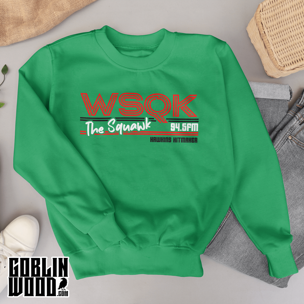 Squawk - Premium Black, Red, Sky or Green Sweatshirt - Stranger Things Inspired - Goblin Wood Exclusive